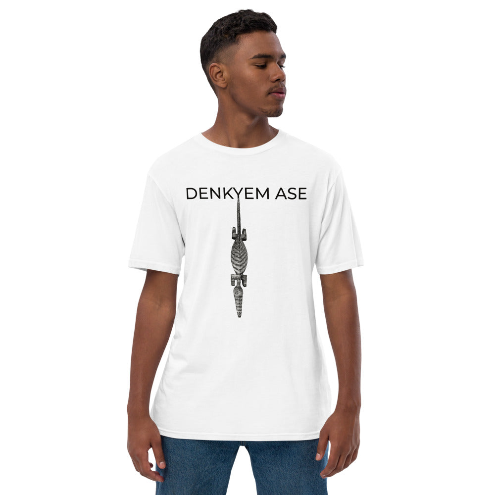 Make a Majestic and Powerful Statement with African Art! The Denkyem Ase logo draws inspiration from the majesty and power of African Art. This T-Shirt makes a statement like no other...Denkyem Ase...and showcases a silver Bobo/Nuna/Bwa Crocodile mask from Burkina Faso.